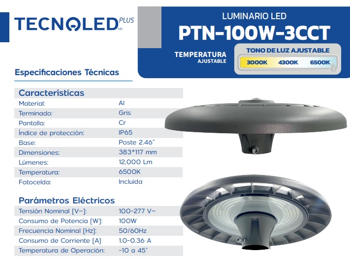 LUMINARIA LED PUNTA DE POSTE, CON 3 AÑOS EXCELENTES DE GARANTÍA EN EL PRODUCTO, PUEDES CAMBIAR EL TONO DE LUZ, CALIDA, NEUTRA O BLANCA, Y CON UN EXCELENTE RANGO DE VOLTAJE, CUENTA CON FOTOCELDA DE TRES PINES.