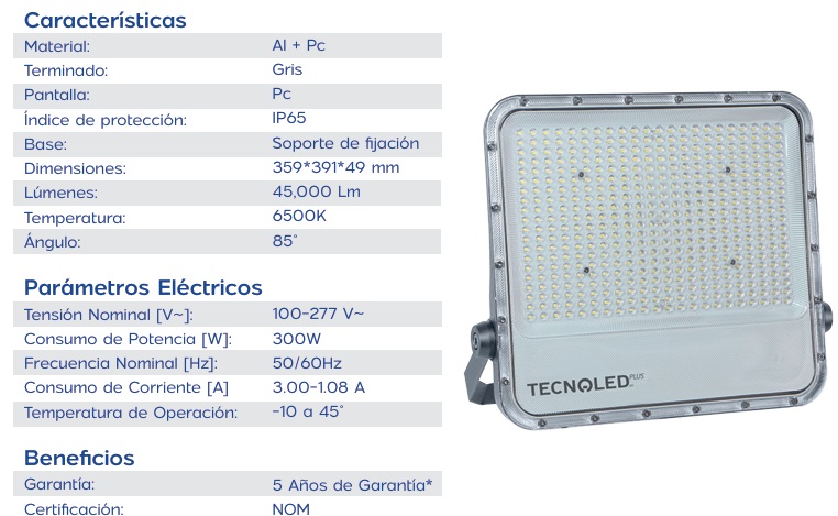 REFLECTOR INDUSTRIAL, EXCELENTE DURABILIDAD, USO EXTERIOR TOTALMENTE, RANGO DE VOLTAJE 100-277V, 45,000 Lm, GARANTI 5 AÑOS